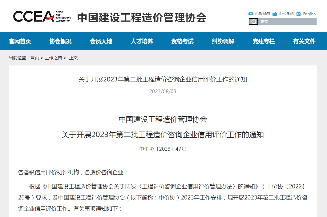 关于开展中价协2023年第二批工程造价咨询企业信用评价工作的通知