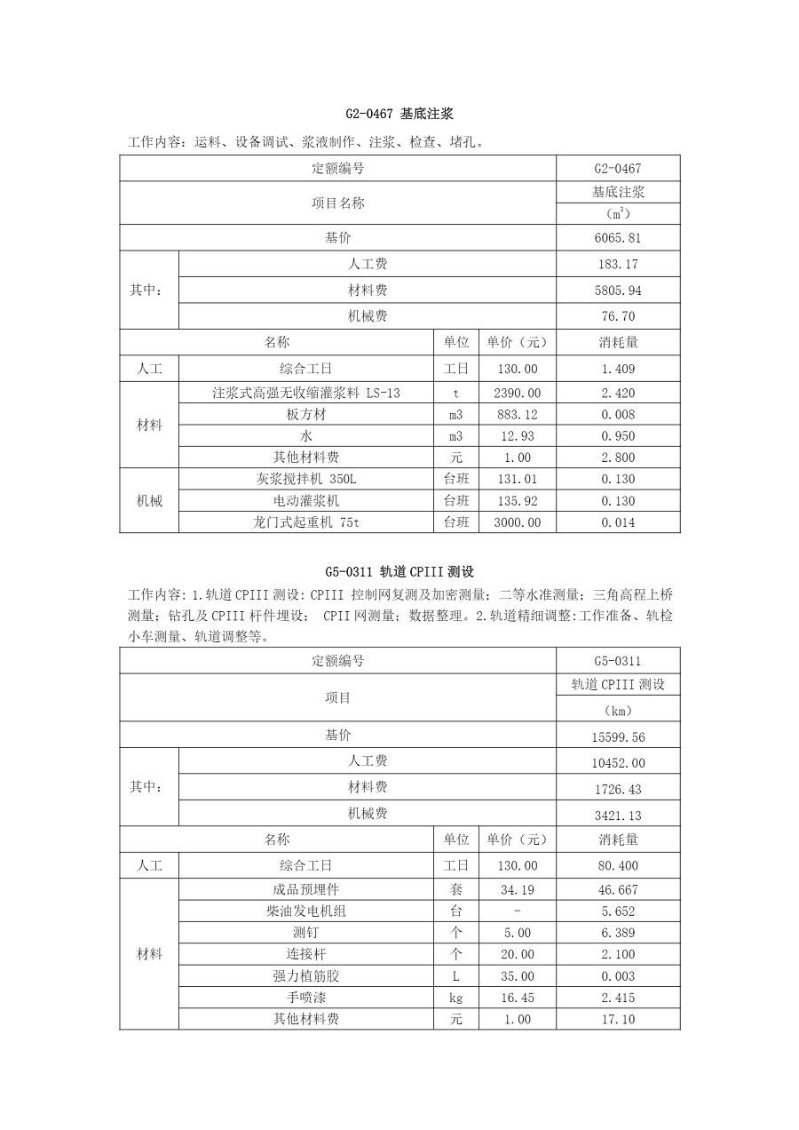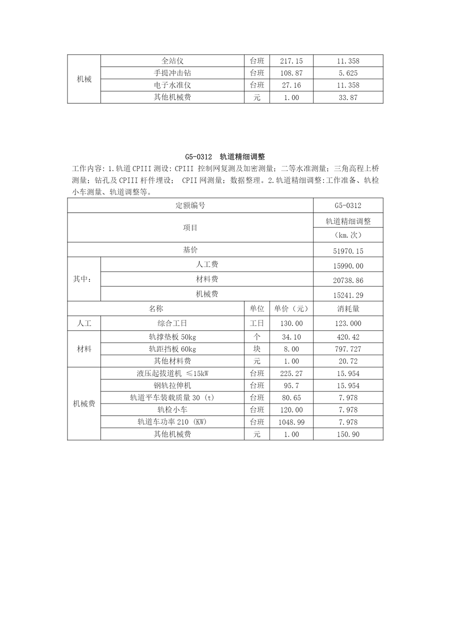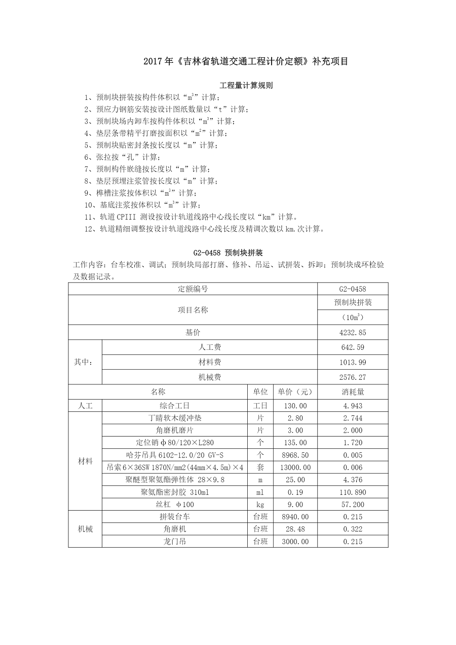 2017年《吉林省轨道交通工程计价定额》补充项目
