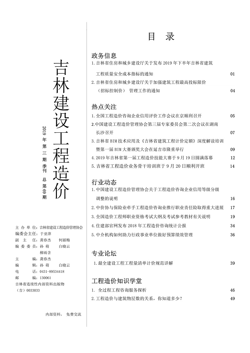 吉林省建筑业协会工程造价专业委员会; 电话:0431-89532605 邮编:134000; 地址:长春市净月区生态大街与天工路交汇伟峰东樾