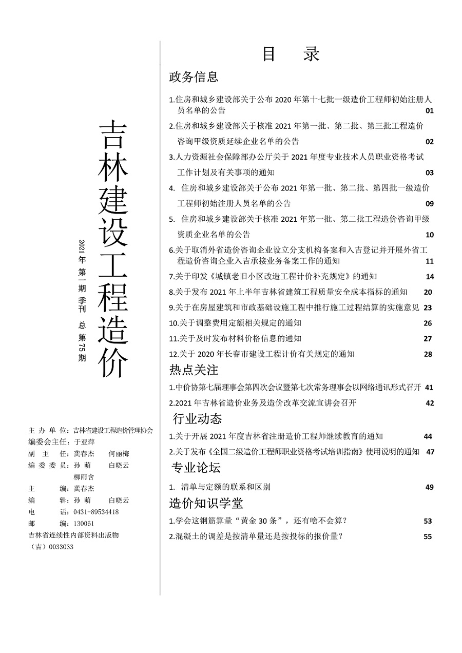 吉林省建筑业协会工程造价专业委员会; 电话:0431-89532605 邮编:134000; 地址:长春市净月区生态大街与天工路交汇伟峰东樾