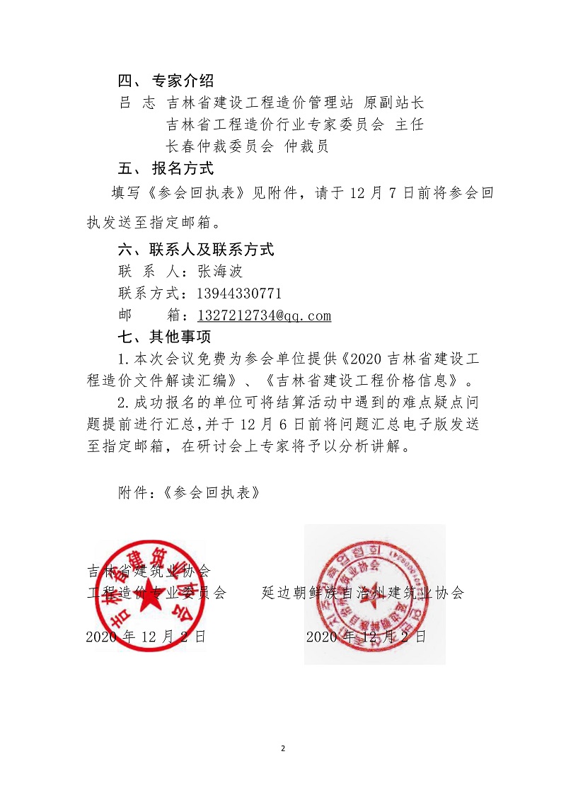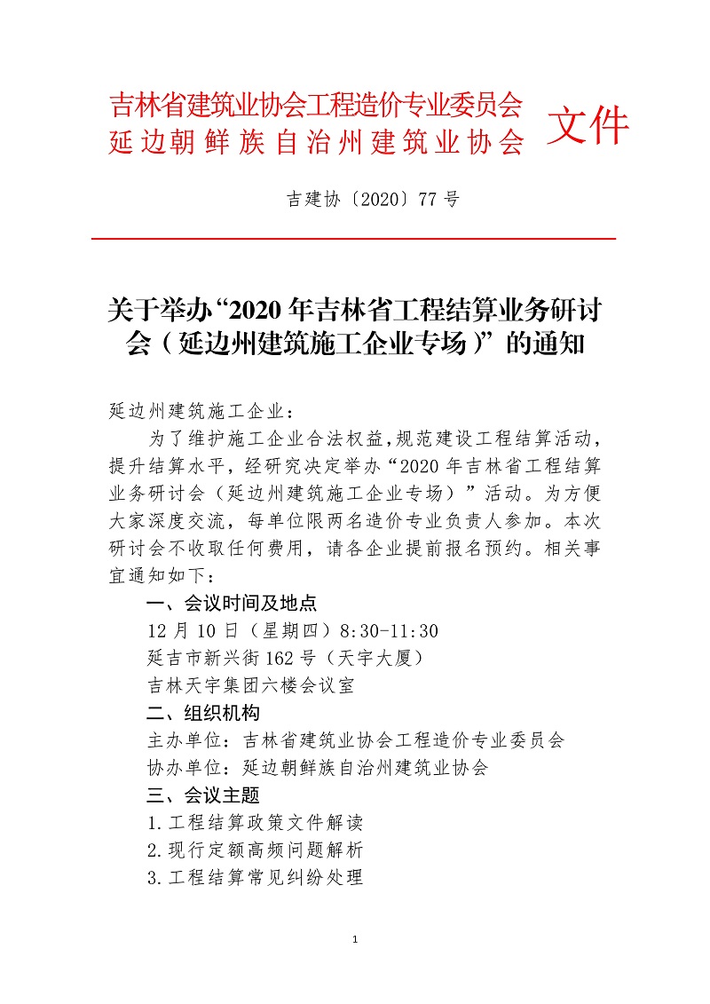 关于举办“2020年吉林省工程结算业务研讨会(延边州建筑施工企业专场)”的通知