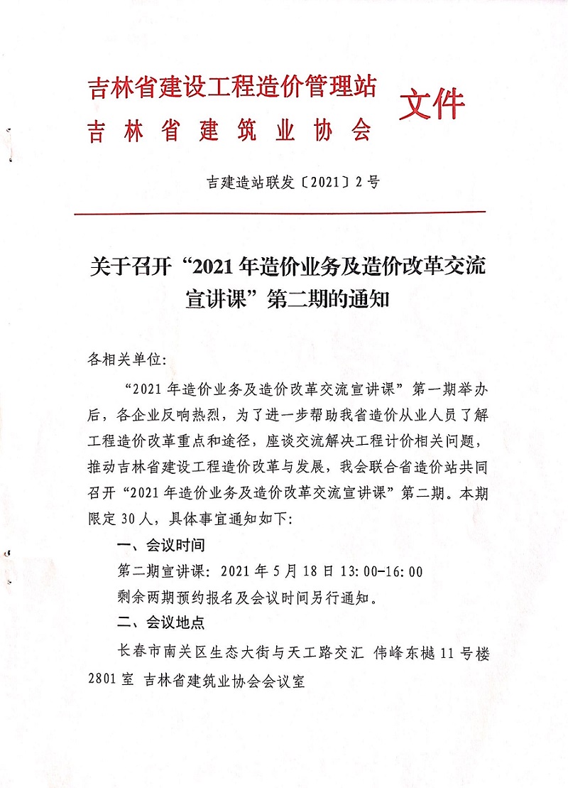 关于召开“2021年造价业务及造价改革交流宣讲课”第二期的通知