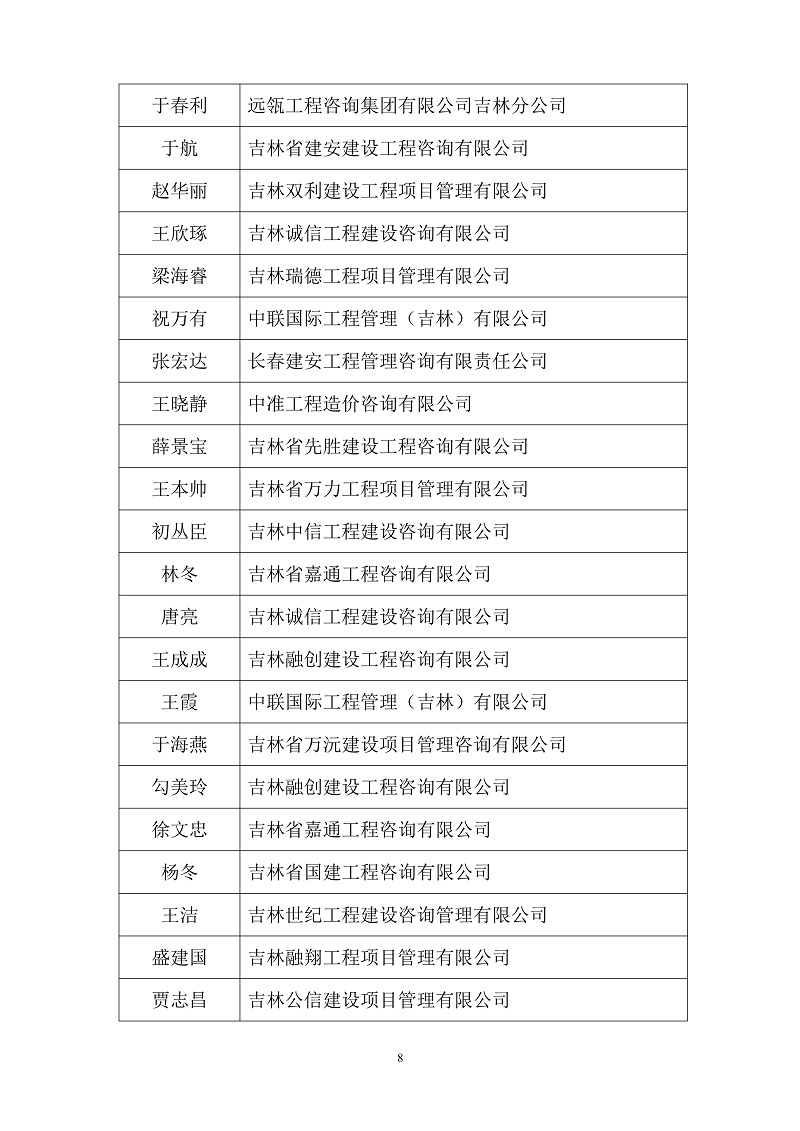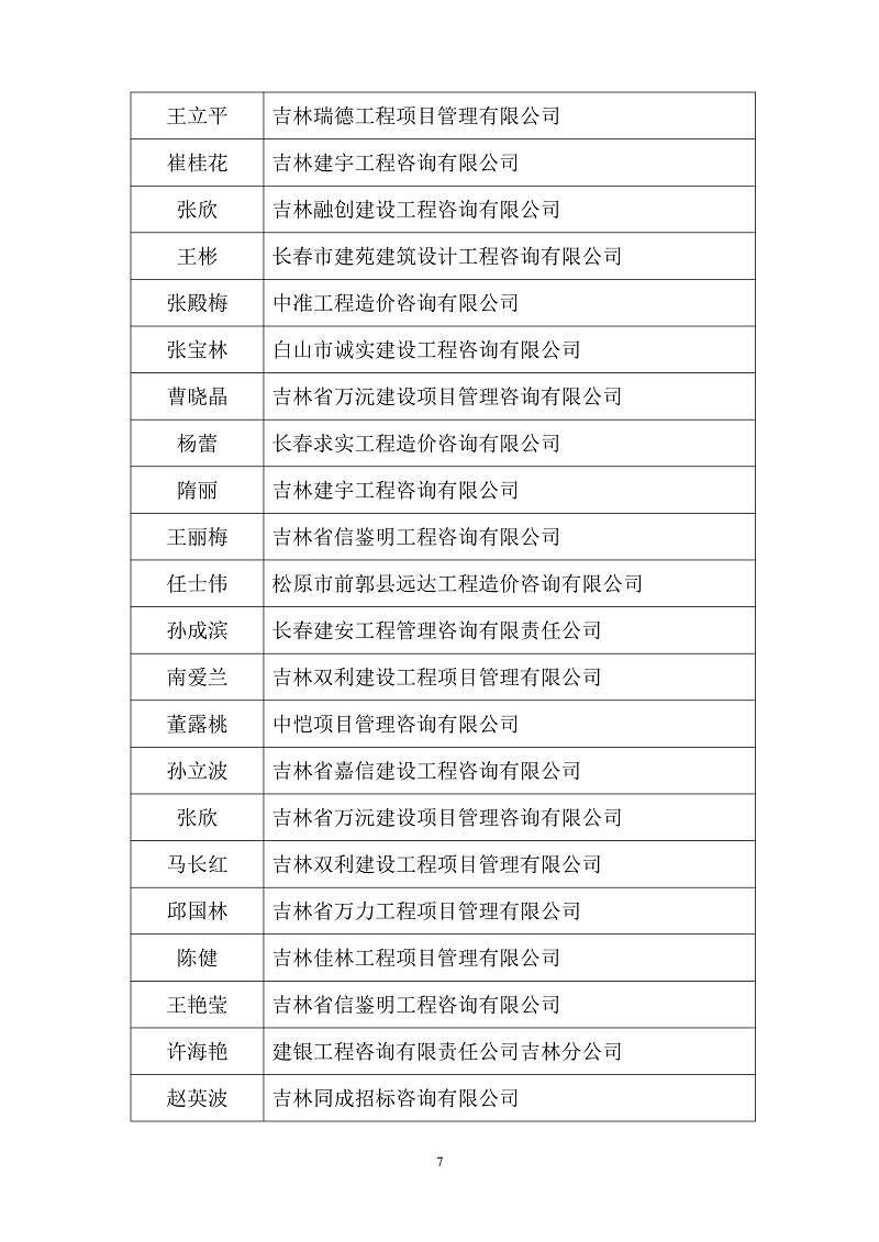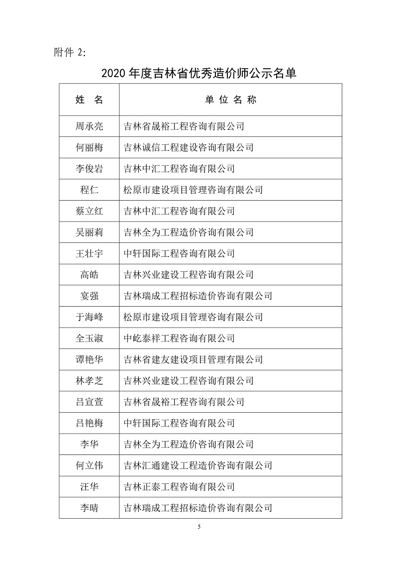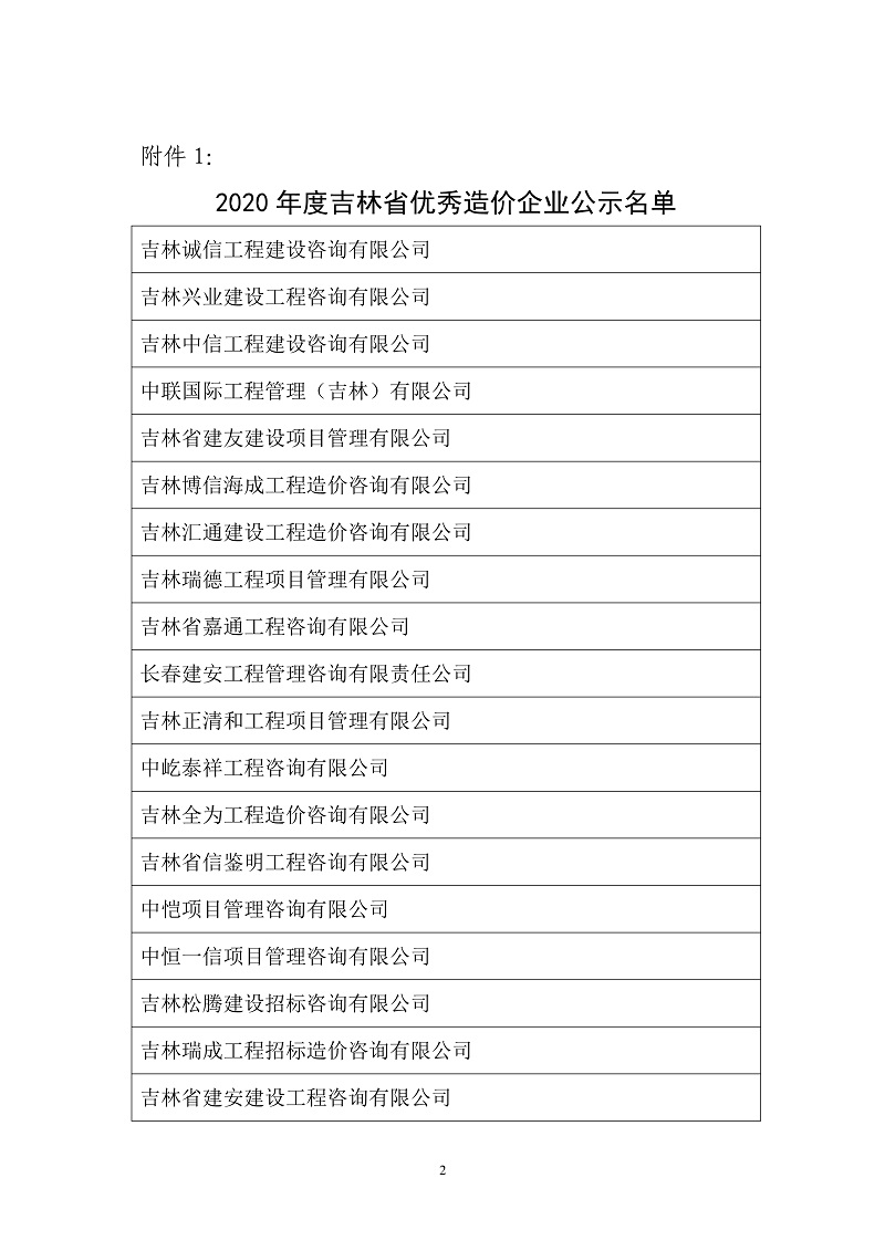 附件:1.2020年度吉林省优秀造价企业公示名单