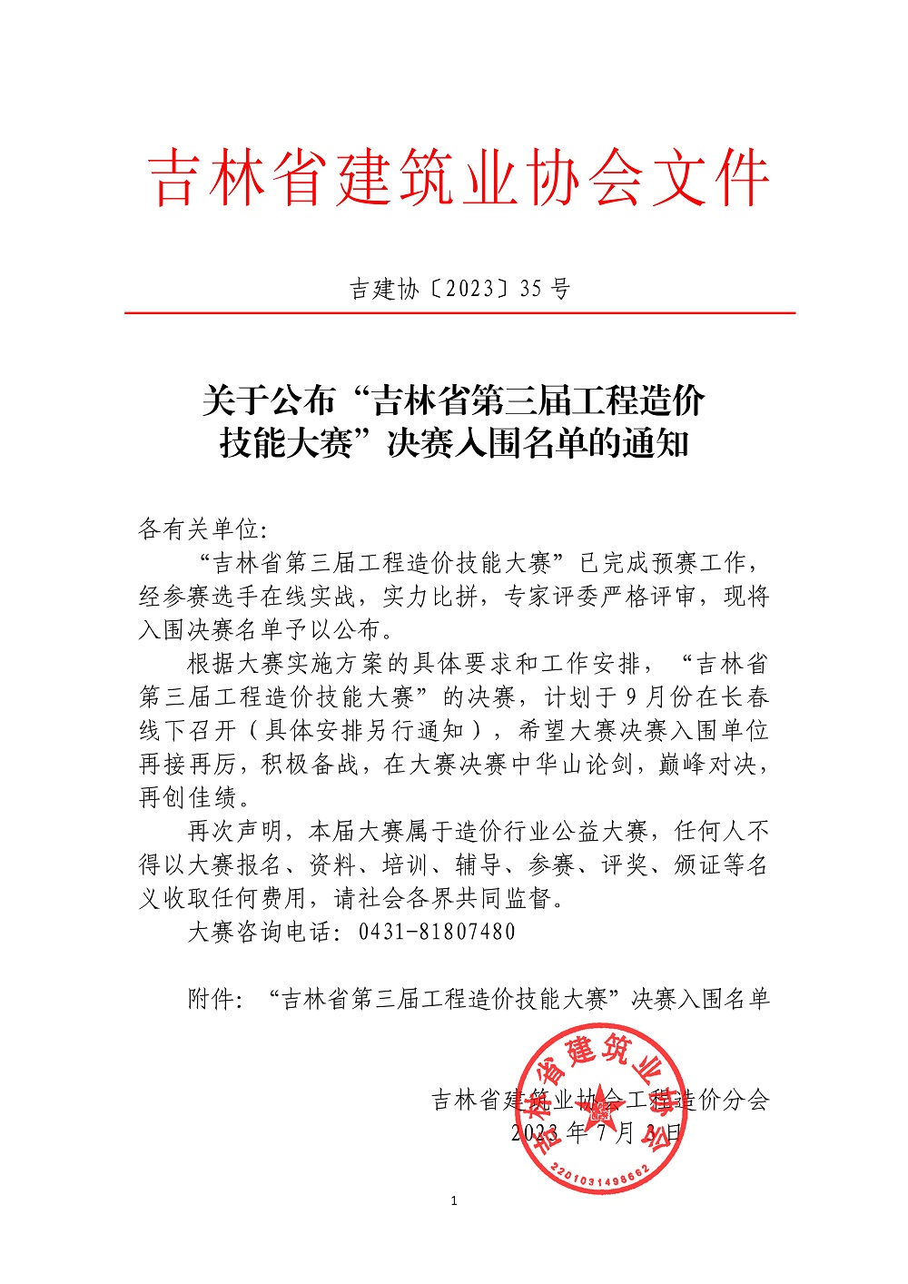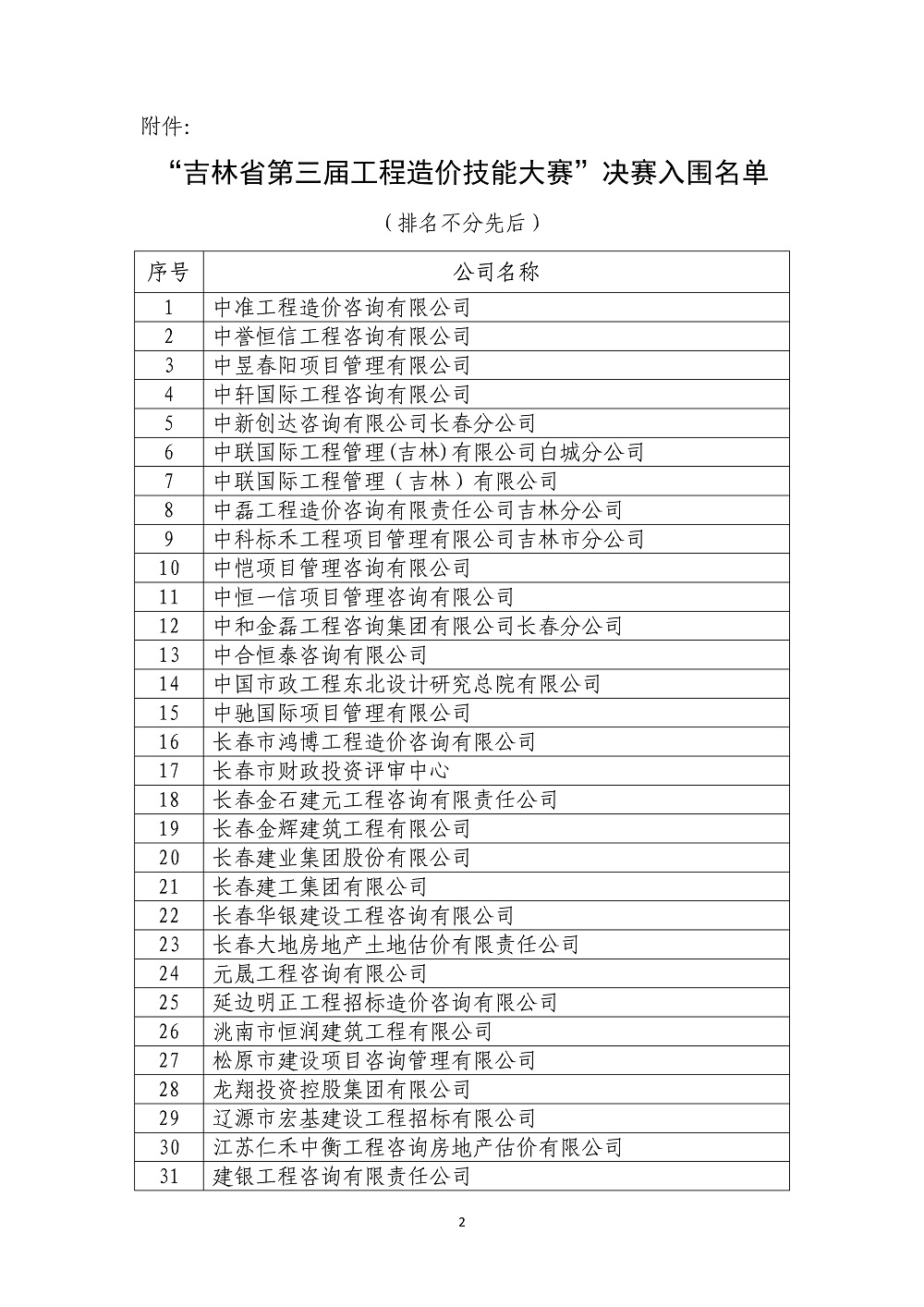 关于公布“吉林省第三届工程造价 技能大赛”决赛入围名单的通知