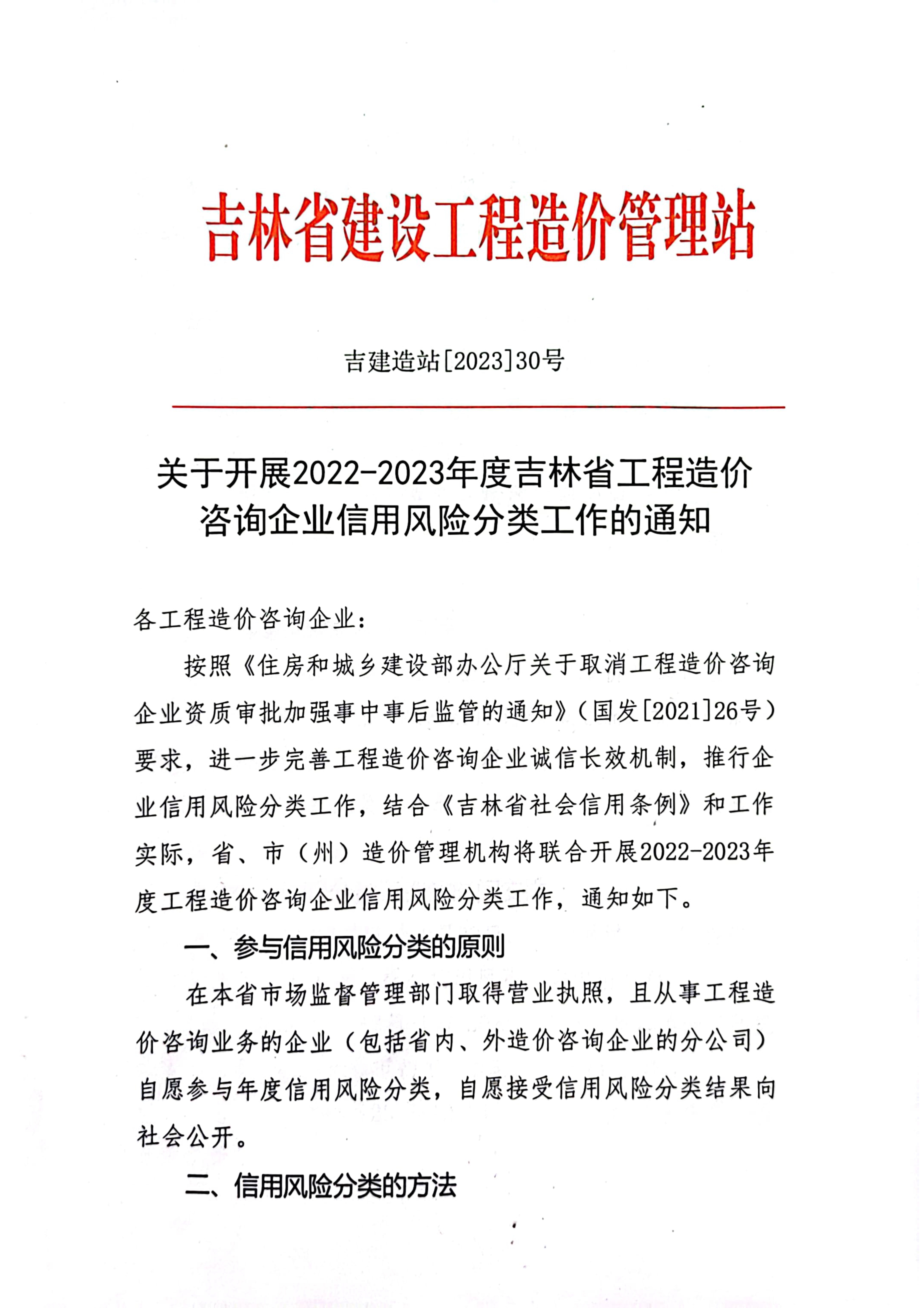 关于开展2022-2023年度吉林省工程造价咨询企业信用风险分类工作的通知