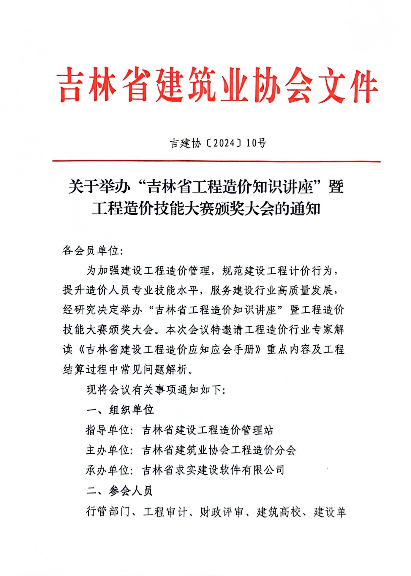 关于举办“吉林省工程造价知识讲座”暨工程造价技能大赛颁奖大会的通知