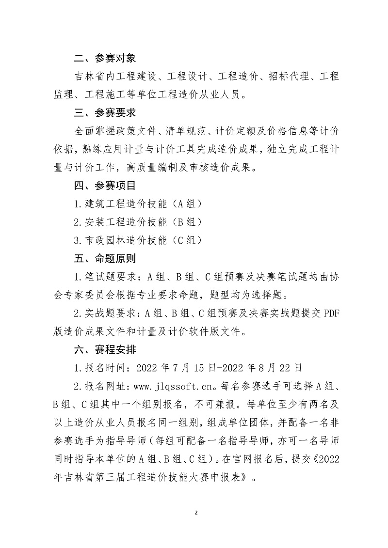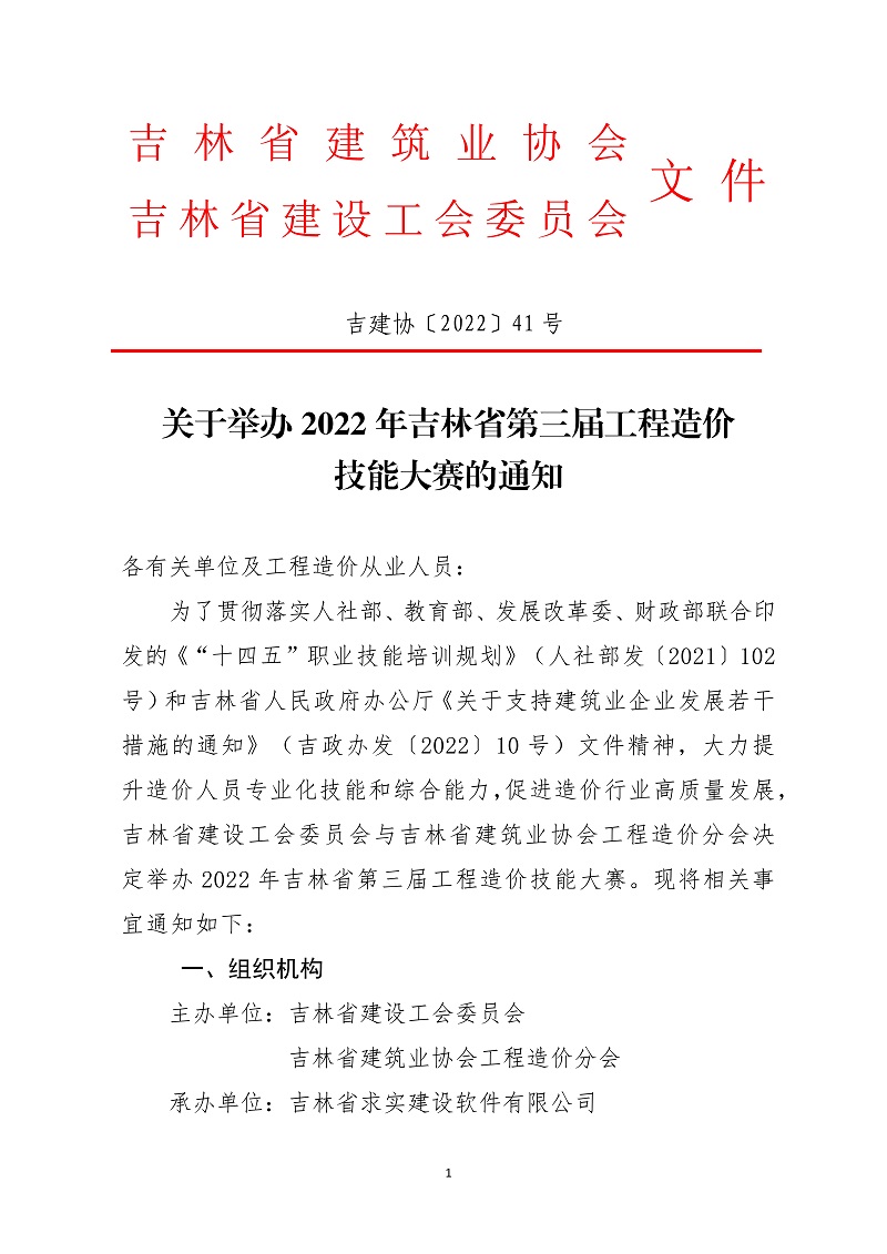 关于举办2022年吉林省第三届工程造价技能大赛的通知