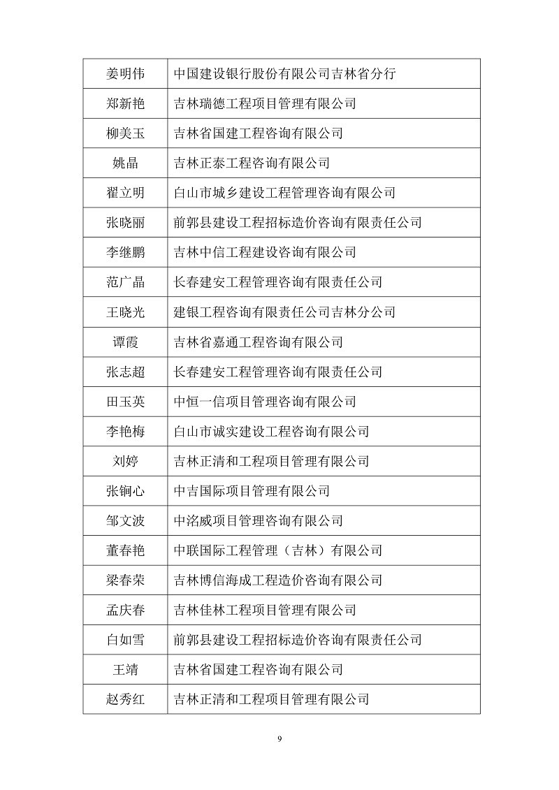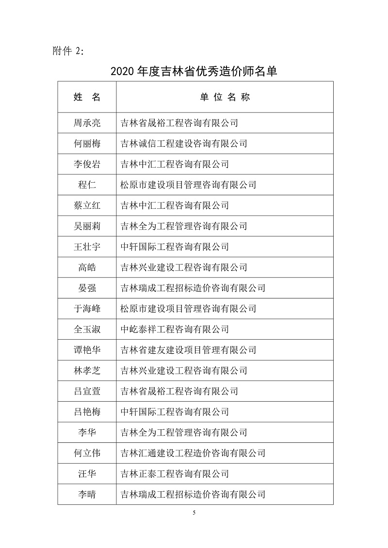 2.2020年度吉林省优秀造价师名单